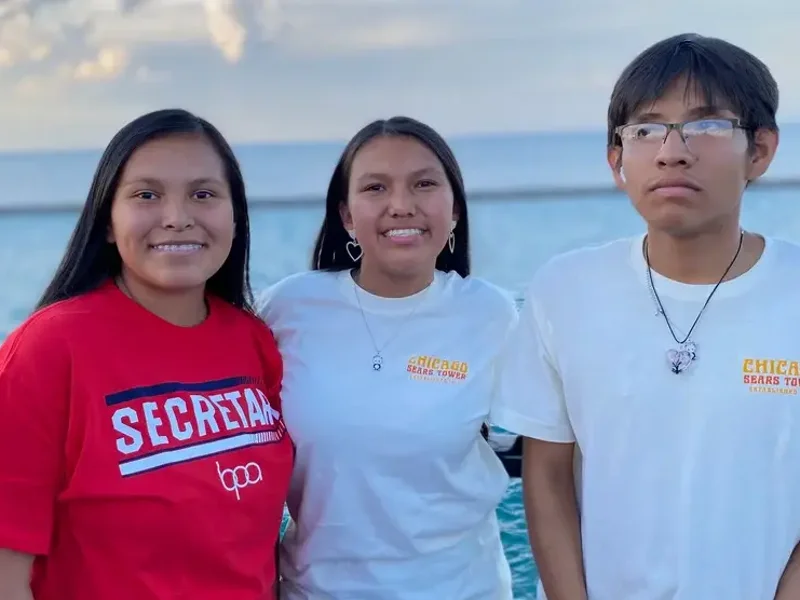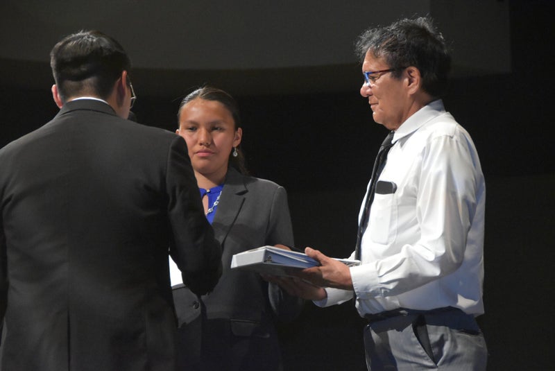 Historian Emily Roanhorse, President Kayla Badoni and former secretary Rodzaiah Curtis.